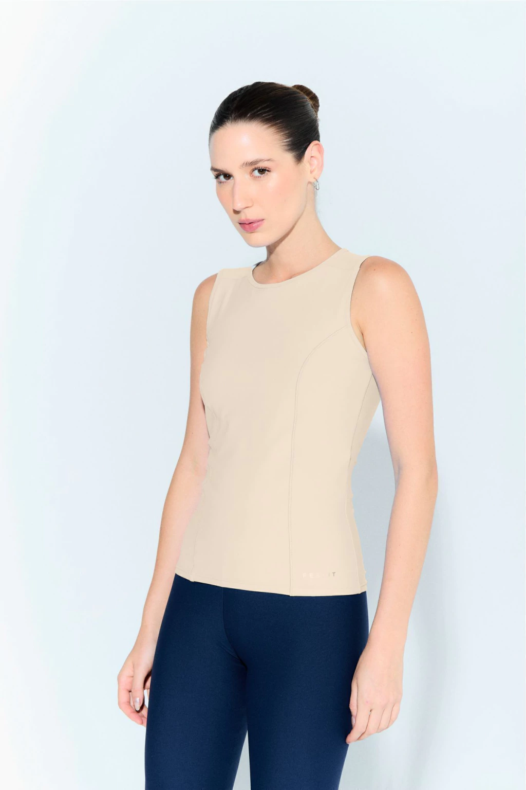 Regata frente dupla em poliamida extra macia com recortes ergonomicos que valorizam a silhueta feminina proporcionando conforto e caimento.